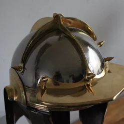 It is made of brass and is delivered including a coif. It is suitable for a head circumference up to 61 cm.