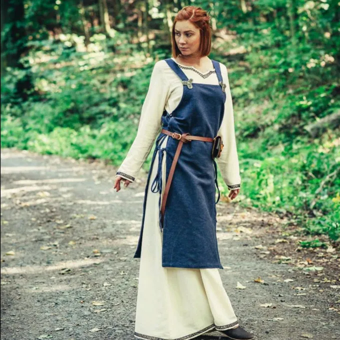 This hangeroc is made in the early medieval / Viking style. It is made of rough cotton and can be closed with cords at the sides.The hangeroc is available in size S/M, L/XL and XXL in black, green, brown and blue