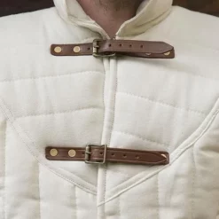 The famous arming ca that was worn under historical helmets. This gambeson arming cap protects the head against blows to the helmet. Also, a historical helmet is much more comfortable to wear with an arming cap underneath. This arming cap is made of rough woven cotton canvas and has a padding made of polyester.